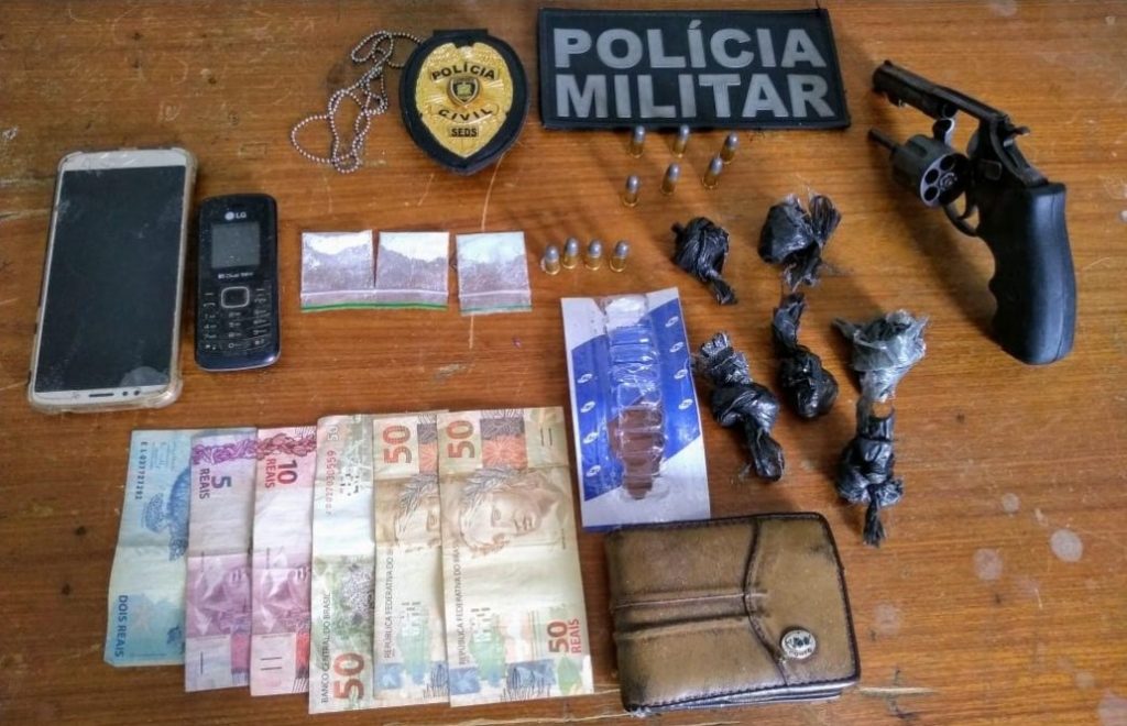 Polícias Militar e Civil prendem suspeito de tráfico de drogas e apreendem revólver em Belém, PB