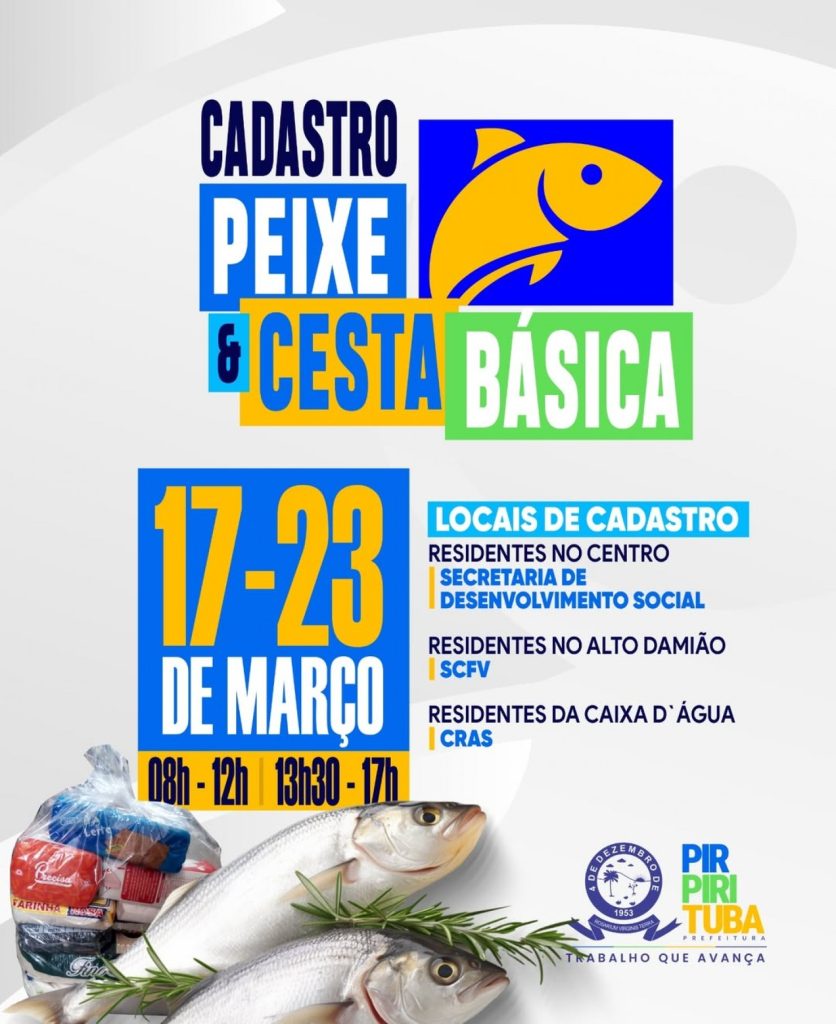 Prefeitura de Pirpirituba divulga calendário de cadastro para distribuição do peixe e cesta básica da Semana Santa