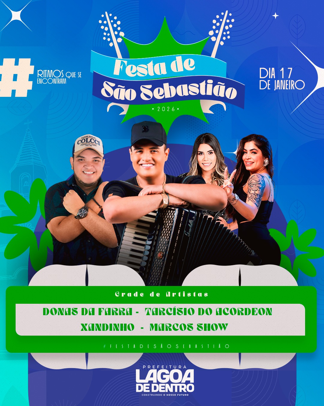Cidades Prefeitura de Lagoa de Dentro divulga atrações do dia 17 de janeiro da Festa de São Sebastião 29 de dezembro de 2025 13:56