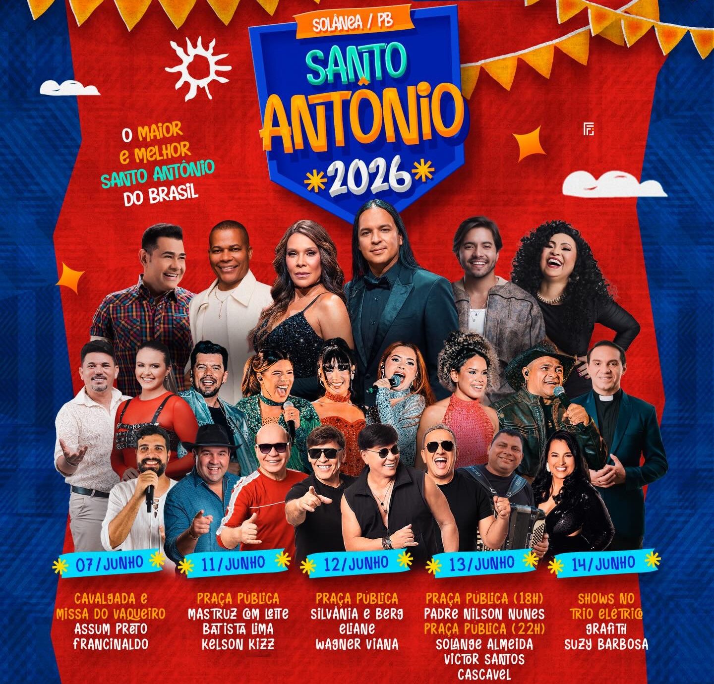 Entretenimento Prefeitura de Solânea divulga programação do Santo Antônio 2026; festa acontece de 7 a 14 de junho 23 de março de 2026 09:35