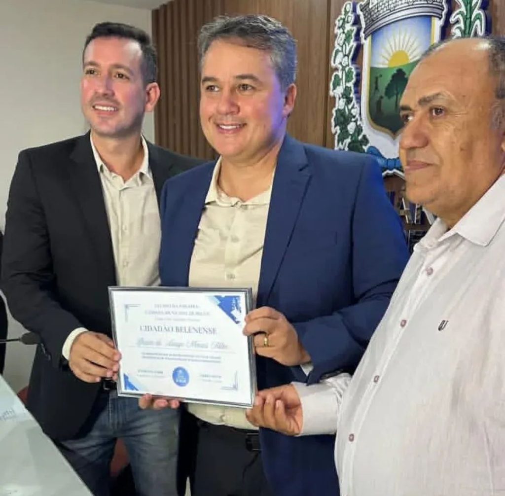 O senador Efraim Filho (PL) foi homenageado com o título de cidadão belenense durante sessão solene realizada na noite desta sexta-feira (27), na Câmara Municipal de Belém. A honraria foi concedida por meio de propositura do vereador Everton Gama (Solidariedade).