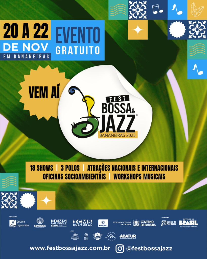 O Fest Bossa & Jazz Bananeiras também realiza, entre os dias 17 e 19, oficinas socioambientais e socioculturais exclusivas para estudantes da rede pública, com a proposta de desenvolver o potencial artístico e a conscientização ambiental dos alunos da Escola Municipal de Ensino Fundamental Profª Emília de Oliveira Neves.